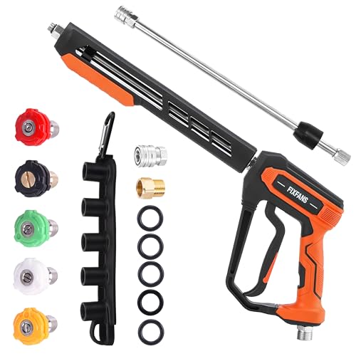 FIXFANS Pressure Washer Gun Kit, 4000PSI Power Washer Handle Gun with Replacement Wand Extension, High Pressure Spray Gun with 5 Nozzle Tips, M22 Fitting, 1/4″ Quick Connect Female, Stainless Steel