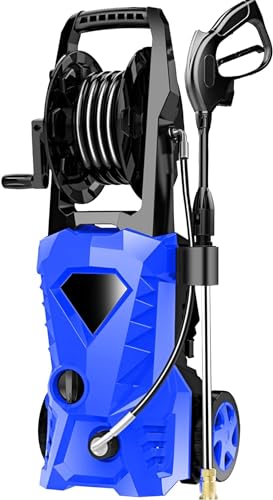 - 【Integragted Storage】: The Huanherad residential pressure washer integrates 4 nozzles (0º, 15º, 25º, 40º), 500ml foam canon, 20ft hose reel, 35ft power cord, spray gun, and wand. You don’t have to worry about missing you pressure washer accessories