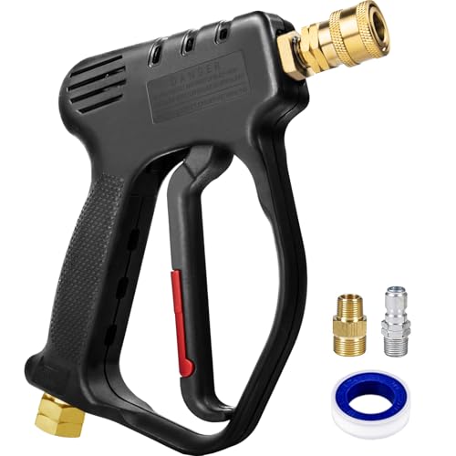 • 【GREAT COMPATIBILITY】3/8" FNPT inlet or 3/8” quick connector inlet & M22-14mm male inlet to fit 3/8" or M22-14mm pressure washer hoses. Universal 1/4" female quick connector outlet to compatible with foam cannon, nozzle, tip, extension wand, surface cleaner, etc. Note: this short pressure washer gun is not suitable for use with garden hoses, water hoses or faucets. So use this short gun to replace the long gun to get more control of your wash and save time and effort right now.
