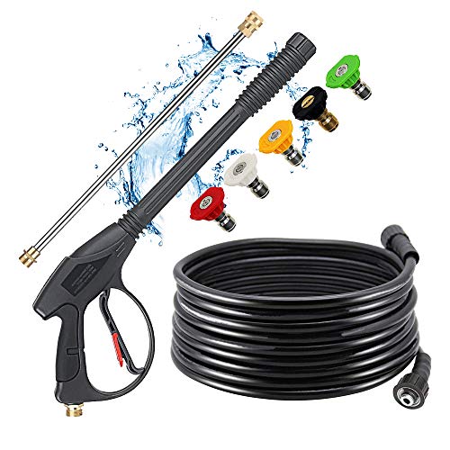 - ✔【Good Quality 】Selkie is well known for our quality rubber hose & accessories,Our gun works with pressure washers of up to 4,000 PSI and 7 GPM and is for cold water machines only (fine up to temps of 140 F/60 C). It comes with the spray gun, a 19-inch wand, 5 nozzles and two hose adaptor connections to make sure that out of its packaging you can hook it up and use it straight away.