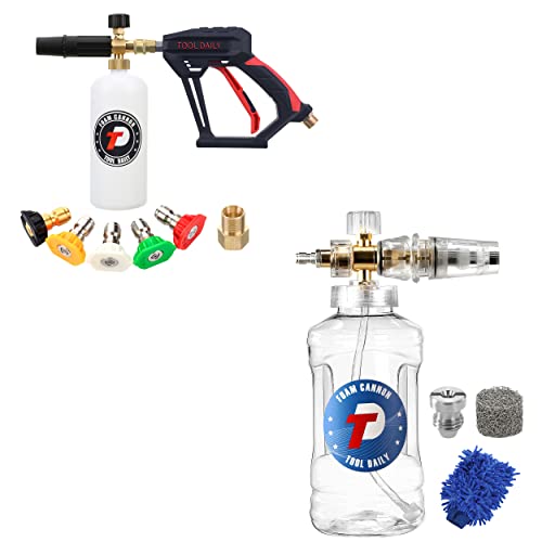 - SUFFICIENT FOAM& NO LEAKING: Chemical guys foam cannon’s max working pressure is 3600 PSI. The container has a bigger mouth for easy filling and an extra-wide neck to prevent cracking. Foam sprayer with 1/4 inch fitting container Capacity: 1.5 Liter / 0.33 Gallon. An upgraded foam adjustment switch ensures effective cleaning. A larger capacity foam cannon for pressure washers can allow you to increase the number and time of cleaning.