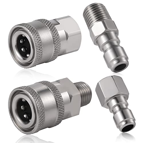 - Premium Material: Our 1/4 quick connect fittings are made of stainless steel, not easy to break and deform, provide you with great use experience. It’s working pressure can go up to 5000 PSI and can withstand hot water temperature up to 310°F (155°C).