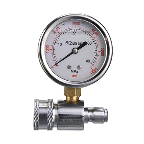 - Pressure gauge for pressure washer is easy to read and it is minimized vibration for accurate readings. The reading of Pressure washer test gauge is up to 6000 PSI.