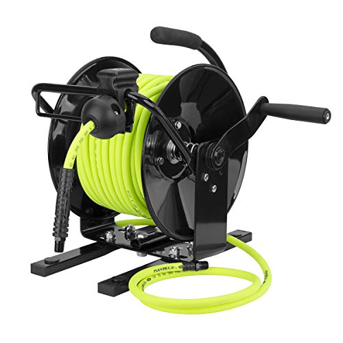 - EXTREMELY PORTABLE – Mount the reel with the mounting bracket to walls, workbenches, or work trucks with ease. The drum lock prevents the air hose from unwinding accidentally
