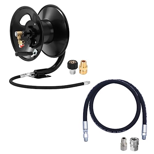 • Specifications: Pressure washer reel is capable of holding 100 feet of hose (not included), with a max PSI of 4000 . It is compatible with 3/8" NPT male end and M22 female end.