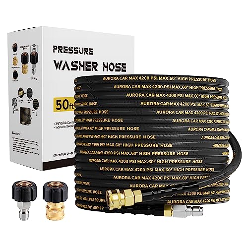 - 【Pressure Washer Hose 50FT】50 Foot power hose is high tensile wire braided, it’s durable and heavy duty, able to support quite high working pressure. Inner tube is reinforced with synthetic rubber. Its innovative high-tech materials and processes can extend the service life and are safe to use, suitable for household cleaning & commercial use.