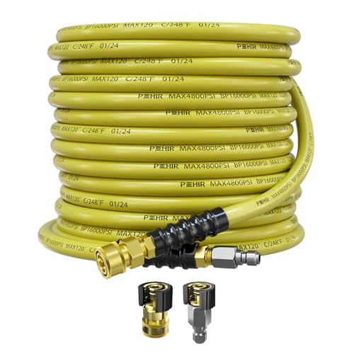 - 【3/8” Pressure Washer Hose】: Maximum working pressure: 4800 PSI to 16000 PSI burst pressure. Power washer hose fits most pneumatic or electric pressure washers for industrial, commercial and residential use.
