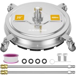 EVEAGE 20″ Pressure Washer Surface Cleaner, Power Washer Surface Cleaner with 4 Wheels, Stainless Steel Housing Power Washer Accessories with 2 Extension Wand, 2 Replacement Nozzles, 4000 PSI